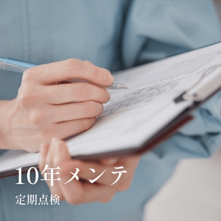 新築のお客様には、お引渡しの3ヵ月、1年後、3年後、5年後、10年後の定期点検をさせていただきます。また3年、5年、10年の定期巡回は重点的に点検し、建物を維持する為の計画的なメンテナンスのアドバイスもさせて頂いております。