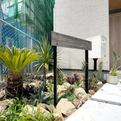 表札やゴツゴツした岩、金網フェンス・・・イイ感じです。