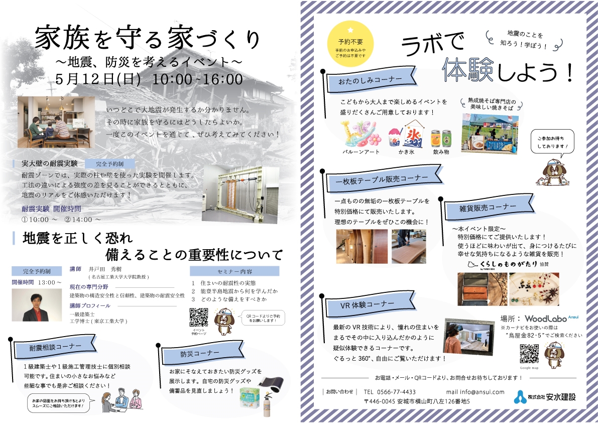 【 5月12日 】家族を守る家づくり~地震、防災を考えるイベント~