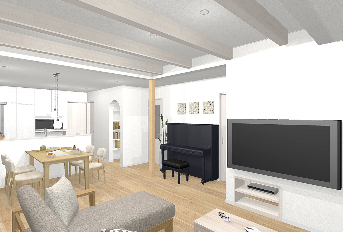 白と木目がおりなす家族がくつろぐ住まい