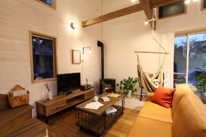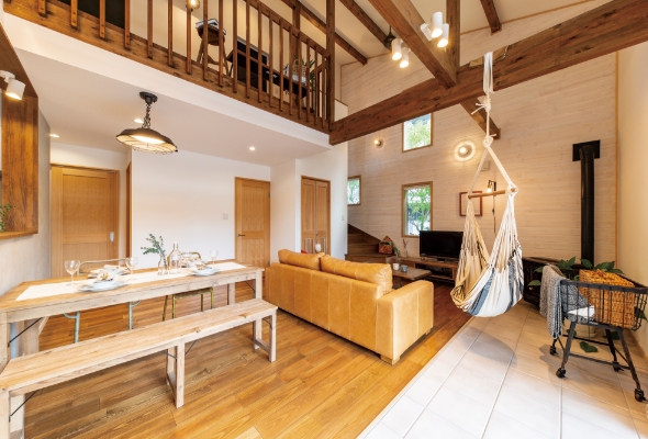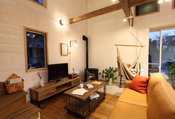ペレットストーブやハンモックといったインテリアがよく似合う、アーバンコテージをイメージしたナチュラルテイスト。